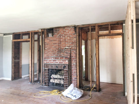 I discussed taking this major wall out, and the client agreed that it would positively change the entire feel of the space. So it happened! We took out the wall to see what we had to work with...and we had an original brick fireplace!