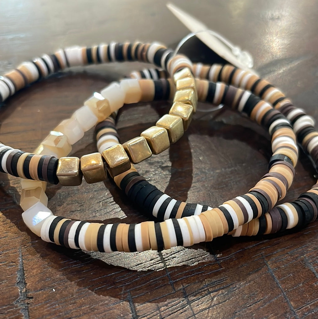 Brown Rubber and Cube Bracelets (set of 3)