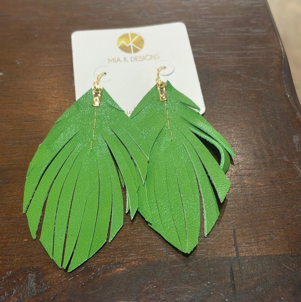 Small Green Feather Earrings