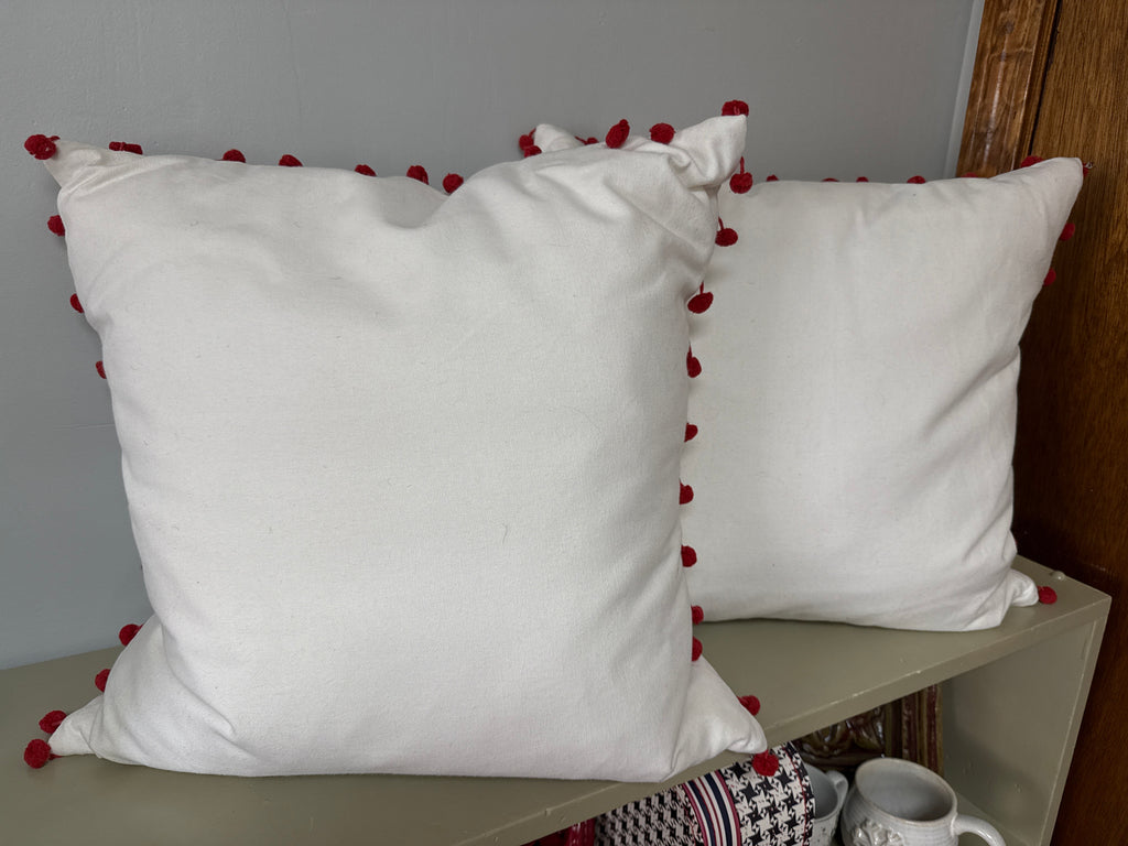 White & Red Pom Pom Pillow
